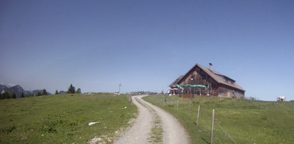 On a very hot June morning my friend Alejandro and I set out to explore the local mountains by mountain bike. We went from Bregenz to Dornbirn and then started scaling the “hinterland”. At Kehlegg we reached a point high above the Rhine valley. Continuing on through the woods on dirt roads we climbed higher and higher until we reached our destination, the Weissenfluhalpe. Sharing the view from this lovely spot were numerous mountain bikers and countless cows that are spending the entire summer in lofty heights on fat meadows.